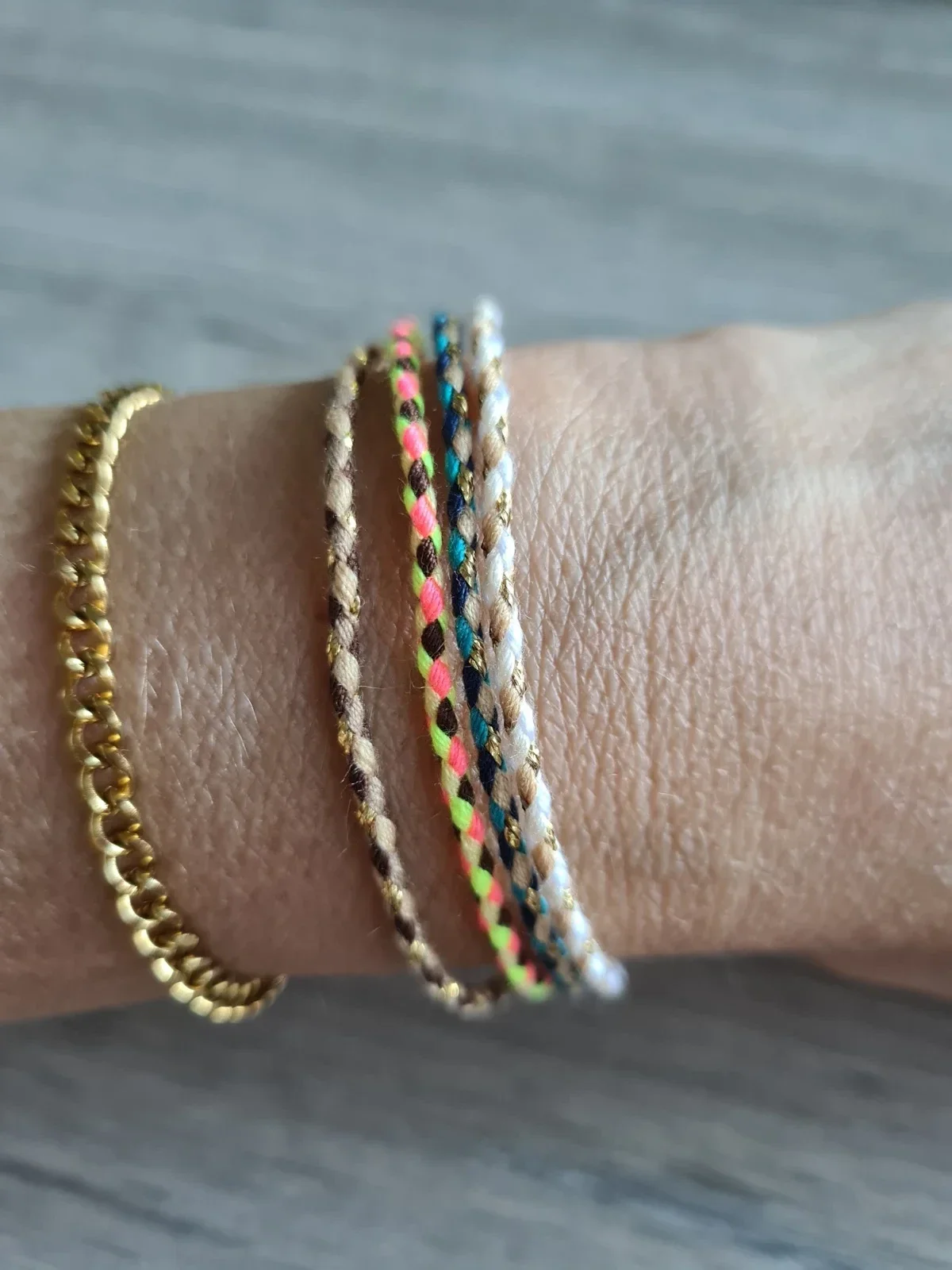 Helemaal hip deze trendy surfkoordjes als armband. De kleuren zijn heel mooi en bij elkaar staat het ook erg mooi! Er zijn momenteel 4 kleuren beschikbaar. Combineer de kleuren of bestel er eentje!
